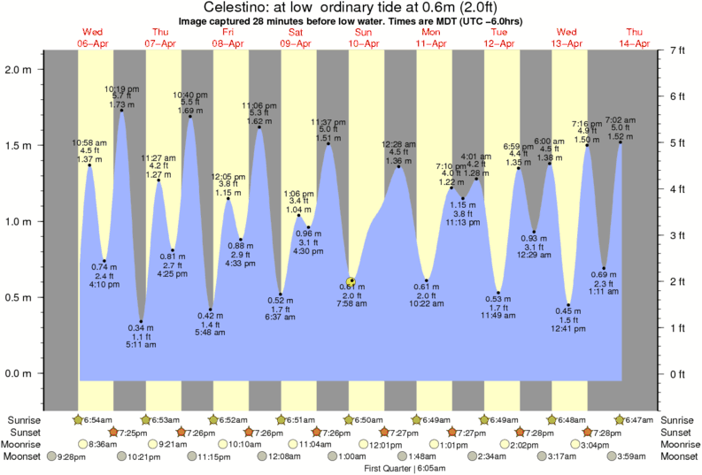 Image captured 28 minutes before low water (at low ordinary tide). Tide height was 0.6m (2.0 ft). Range 1.98m (6.5 ft). Toggle tide graph
