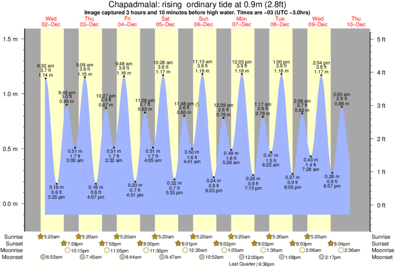 Image captured 3 hours and 10 minutes before high water (rising ordinary tide). Tide height was 0.9m (2.8 ft). Range 1.54m (5.1 ft). Toggle tide graph