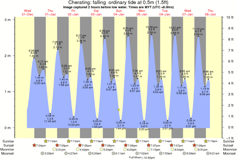 Forecast wind and swell just offshore from Cherating around the time the photo was taken