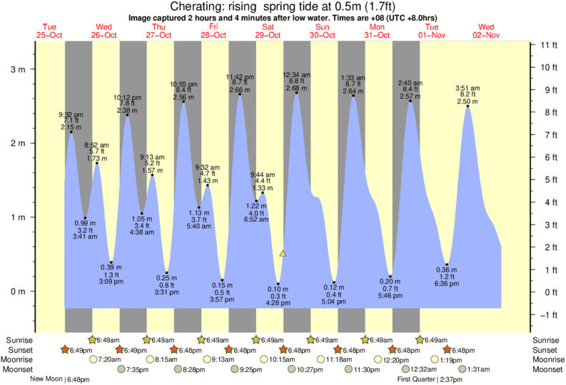 Image captured 2 hours and 4 minutes after low water (rising spring tide). Tide height was 0.5m (1.7 ft). Range 3.28m (10.8 ft). Toggle tide graph