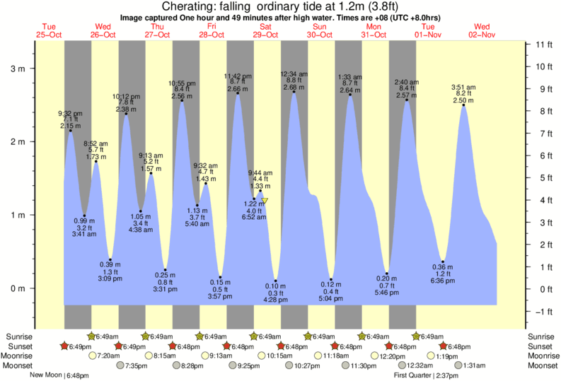 Image captured One hour and 49 minutes after high water (falling ordinary tide). Tide height was 1.2m (3.8 ft). Range 3.28m (10.8 ft). Toggle tide graph