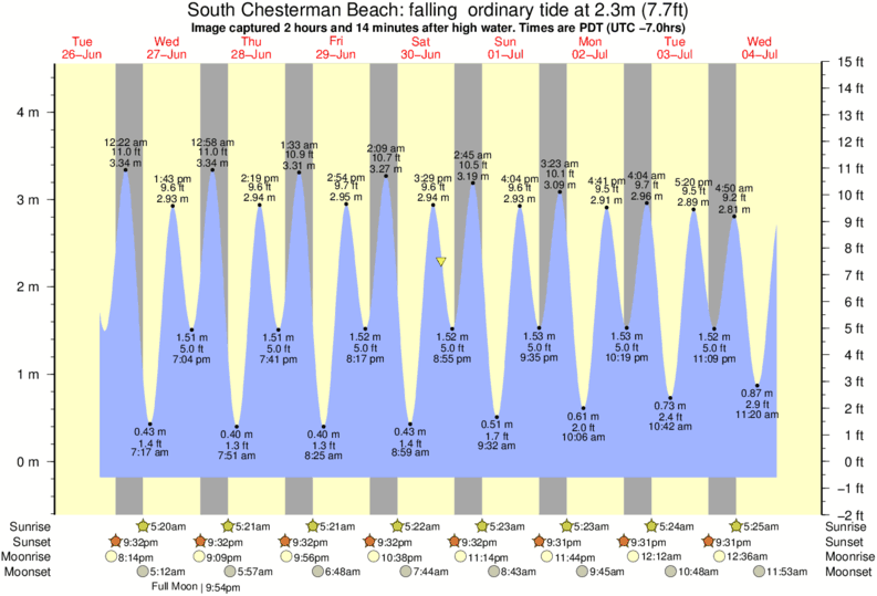 Image captured 2 hours and 14 minutes after high water (falling ordinary tide). Tide height was 2.3m (7.7 ft). Range 4.31m (14.1 ft). Toggle tide graph