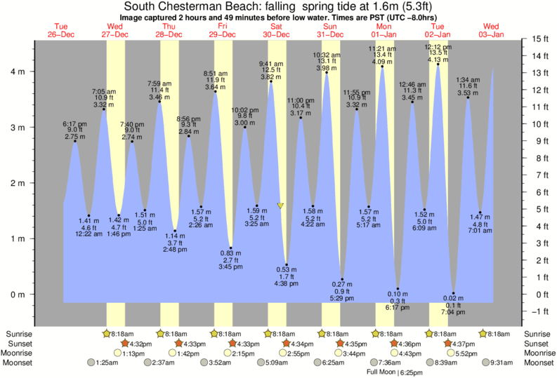 Image captured 2 hours and 49 minutes before low water (falling spring tide). Tide height was 1.6m (5.3 ft). Range 4.28m (14.0 ft). Toggle tide graph
