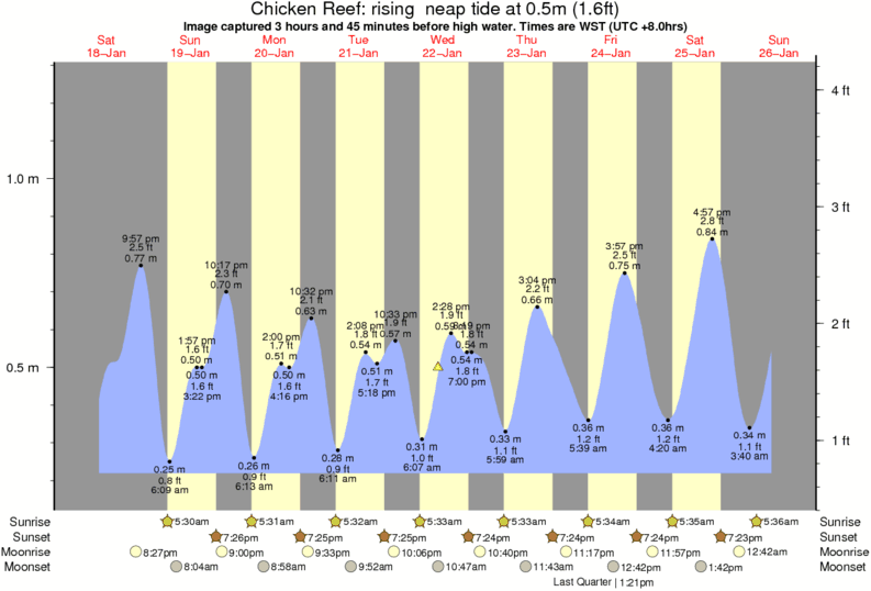 Forecast wind and swell just offshore from Chicken Reef around the time the photo was taken