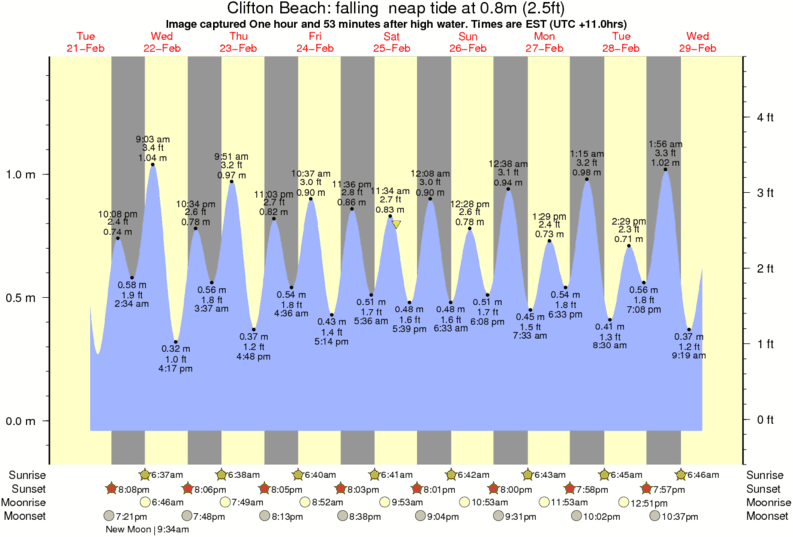 Forecast wind and swell just offshore from Clifton Beach around the time the photo was taken