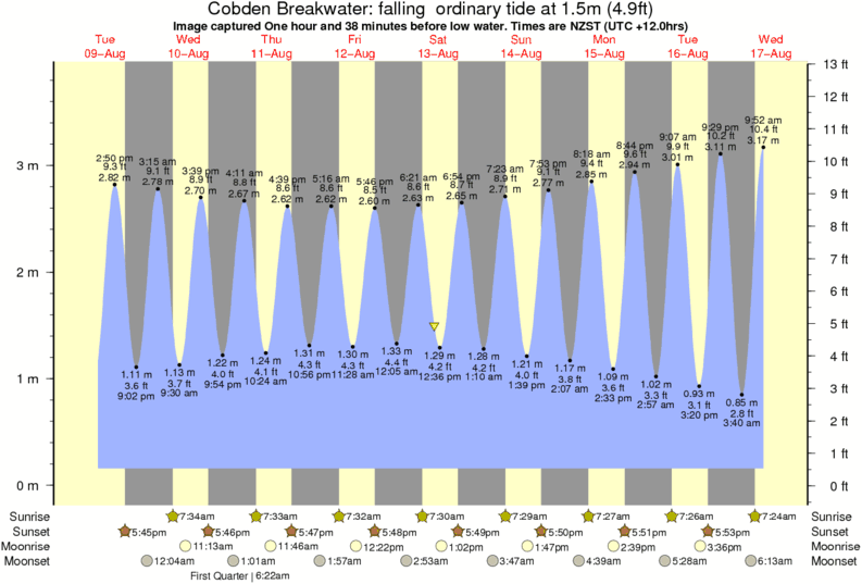 Image captured One hour and 38 minutes before low water (falling ordinary tide). Tide height was 1.5m (4.9 ft). Range 3.47m (11.4 ft). Toggle tide graph