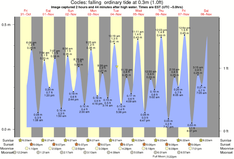 Image captured 2 hours and 44 minutes after high water (falling ordinary tide). Tide height was 0.3m (1.0 ft). Range 0.48m (1.6 ft). Toggle tide graph