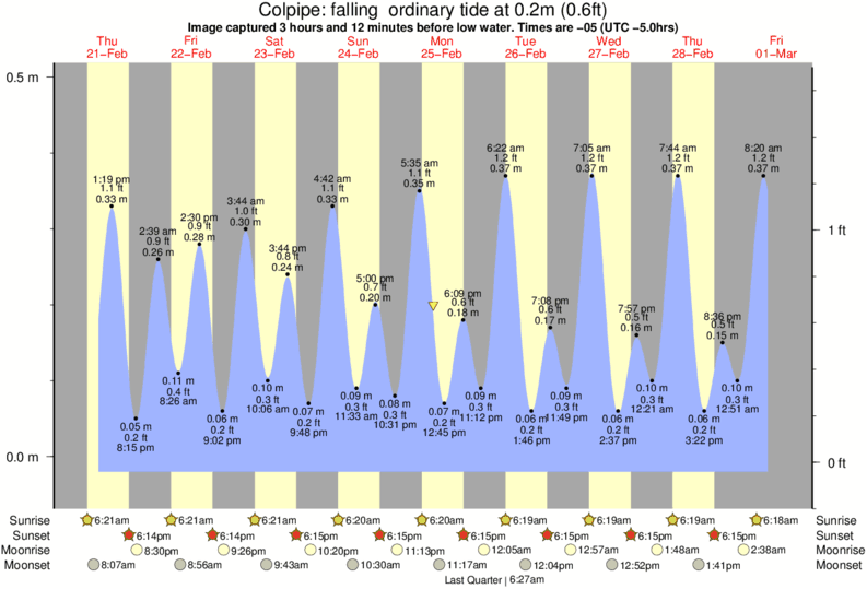 Image captured 3 hours and 12 minutes before low water (falling ordinary tide). Tide height was 0.2m (0.6 ft). Range 0.49m (1.6 ft). Toggle tide graph