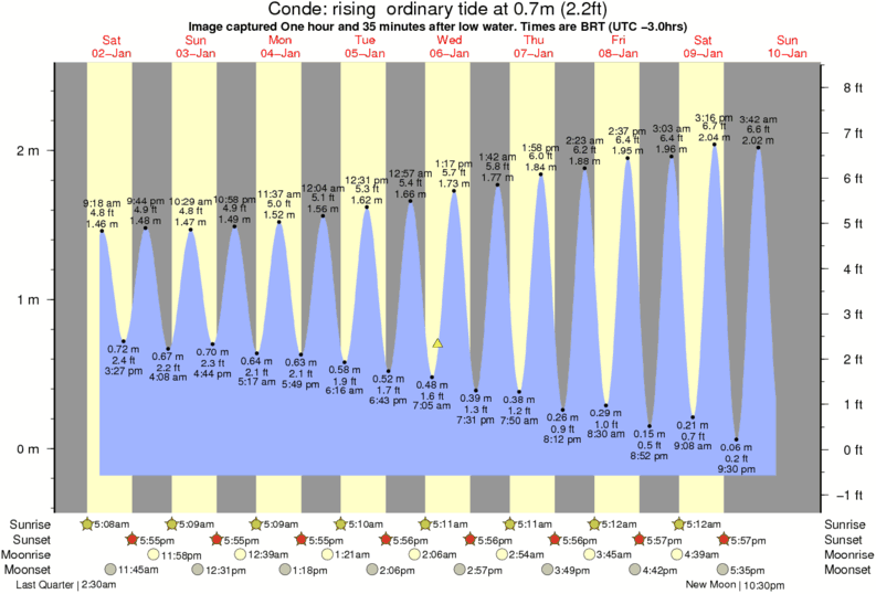 Image captured One hour and 35 minutes after low water (rising ordinary tide). Tide height was 0.7m (2.2 ft). Range 2.52m (8.3 ft). Toggle tide graph