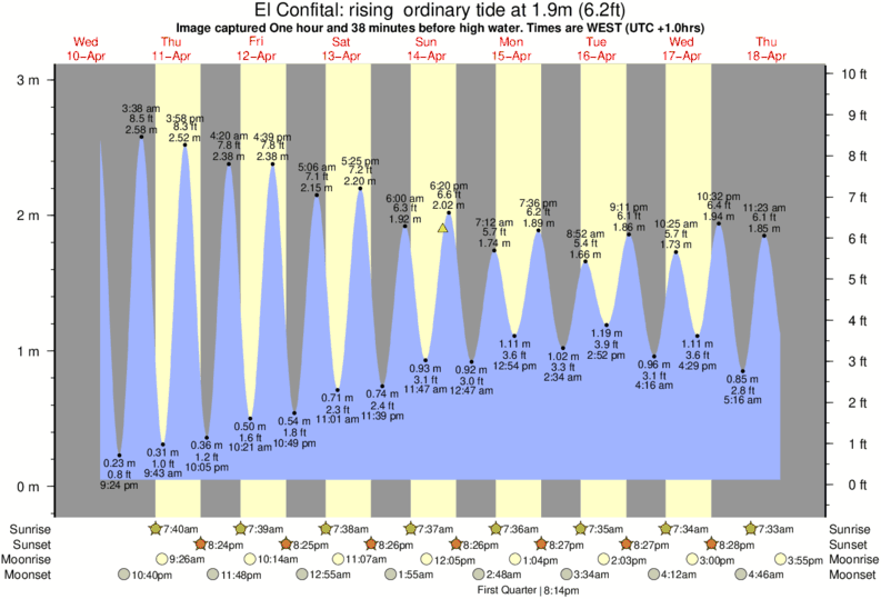 Forecast wind and swell just offshore from El Confital around the time the photo was taken