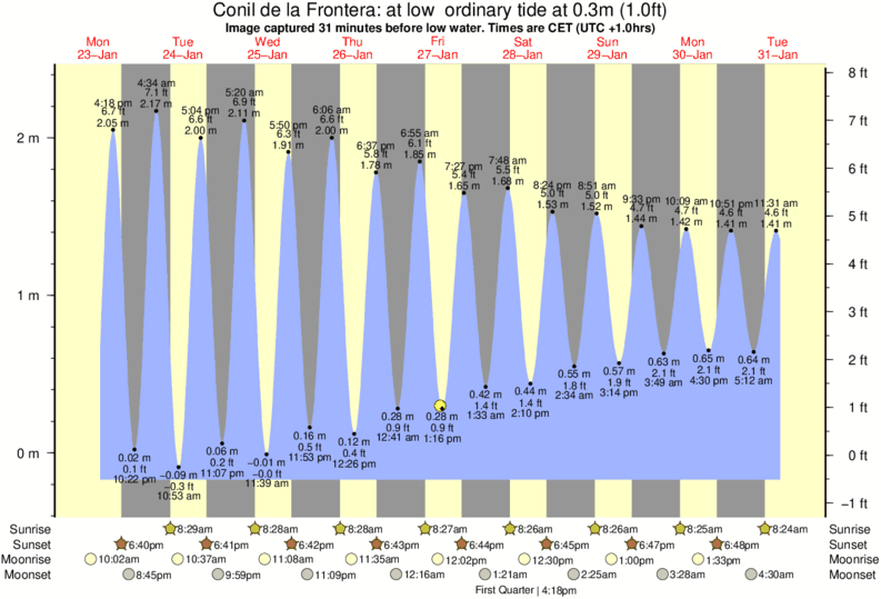 Forecast wind and swell just offshore from Conil de la Frontera around the time the photo was taken