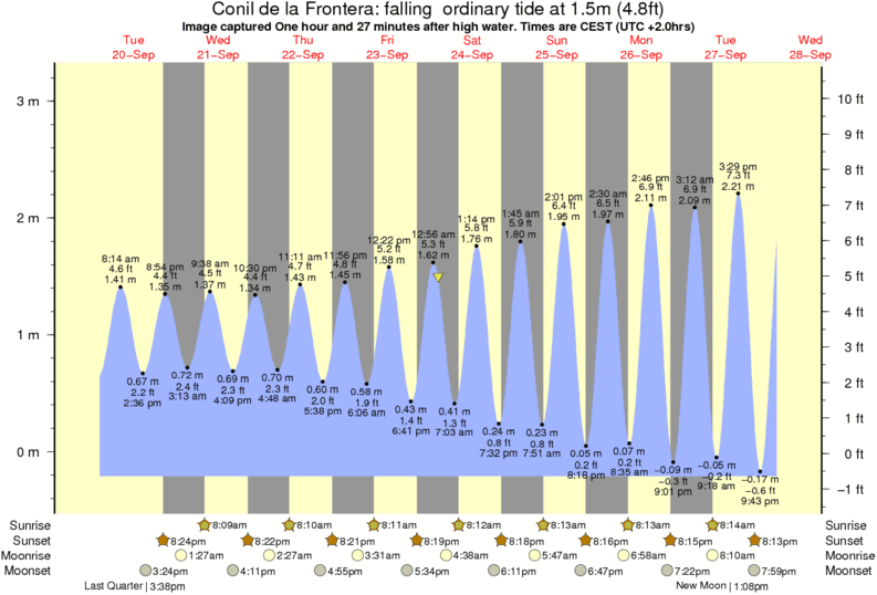Image captured One hour and 27 minutes after high water (falling ordinary tide). Tide height was 1.5m (4.8 ft). Range 3.22m (10.6 ft). Toggle tide graph