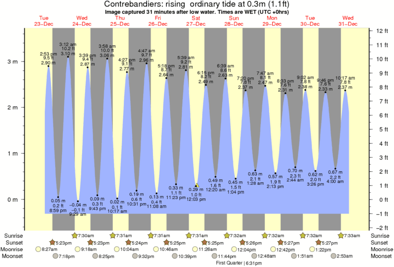 Image captured 31 minutes after low water (rising ordinary tide). Tide height was 0.3m (1.1 ft). Range 3.67m (12.0 ft). Toggle tide graph