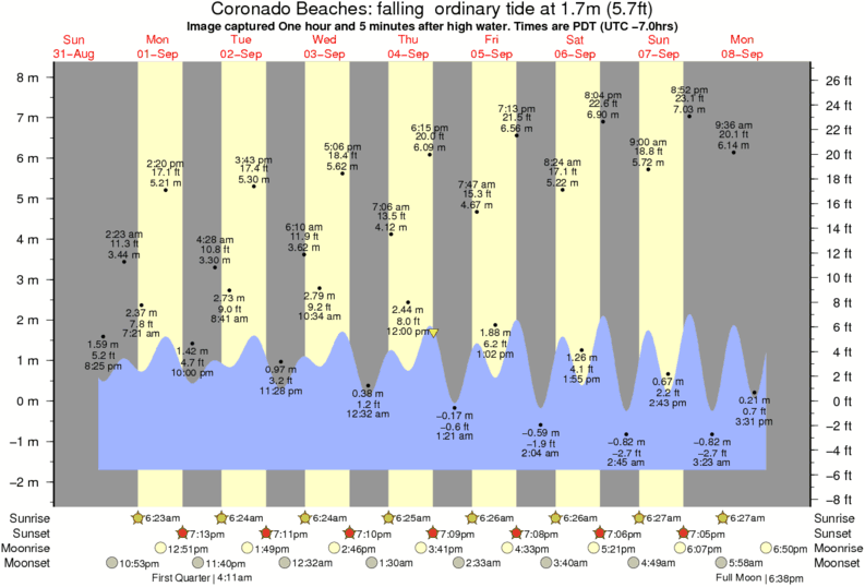 Forecast wind and swell just offshore from Coronado Beaches around the time the photo was taken