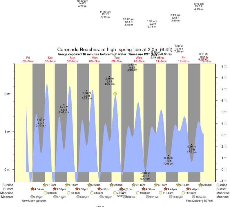 Forecast wind and swell just offshore from Coronado Beaches around the time the photo was taken