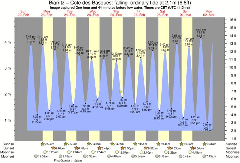 Image captured One hour and 44 minutes before low water (falling ordinary tide). Tide height was 2.1m (6.8 ft). Range 3.96m (13.0 ft). Toggle tide graph