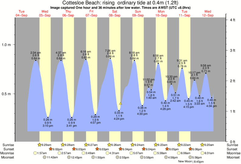 Image captured One hour and 36 minutes after low water (rising ordinary tide). Tide height was 0.4m (1.2 ft). Range 1.05m (3.4 ft). Toggle tide graph