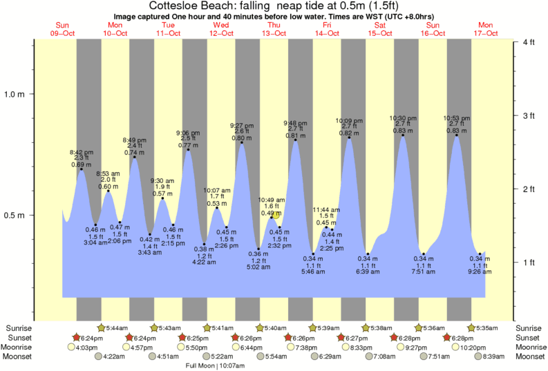 Image captured One hour and 40 minutes before low water (falling neap tide). Tide height was 0.5m (1.5 ft). Range 0.97m (3.2 ft). Toggle tide graph