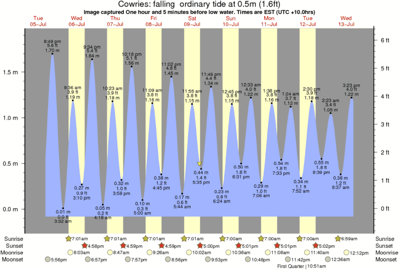 Image captured One hour and 5 minutes before low water (falling ordinary tide). Tide height was 0.5m (1.6 ft). Range 1.87m (6.1 ft). Toggle tide graph