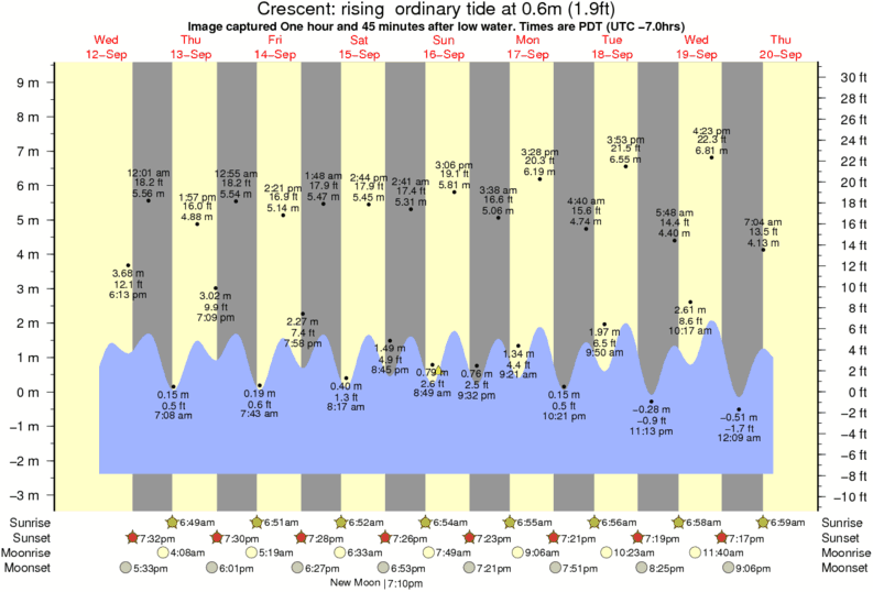 Image captured One hour and 45 minutes after low water (rising ordinary tide). Tide height was 0.6m (1.9 ft). Range 10.88m (35.7 ft). Toggle tide graph