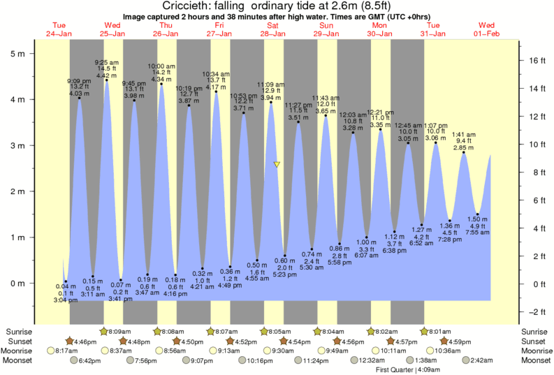 Image captured 2 hours and 38 minutes after high water (falling ordinary tide). Tide height was 2.6m (8.5 ft). Range 5.17m (17.0 ft). Toggle tide graph