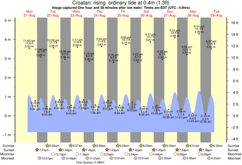 Image captured One hour and 58 minutes after low water (rising ordinary tide). Tide height was 0.4m (1.3 ft). Range 5.46m (17.9 ft). Toggle tide graph