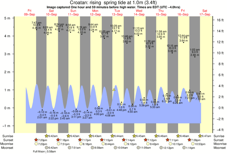 Image captured One hour and 59 minutes before high water (rising spring tide). Tide height was 1.0m (3.4 ft). Range 5.41m (17.7 ft). Toggle tide graph