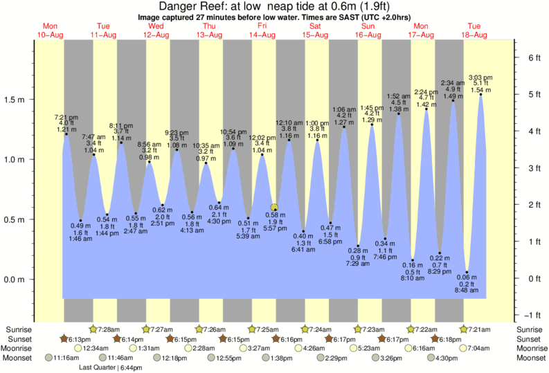 Forecast wind and swell just offshore from Danger Reef around the time the photo was taken