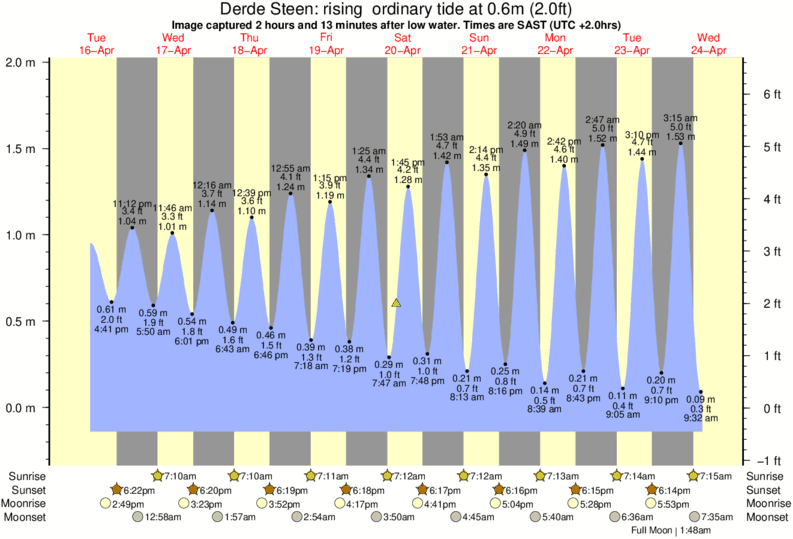 Image captured 2 hours and 13 minutes after low water (rising ordinary tide). Tide height was 0.6m (2.0 ft). Range 1.97m (6.5 ft). Toggle tide graph