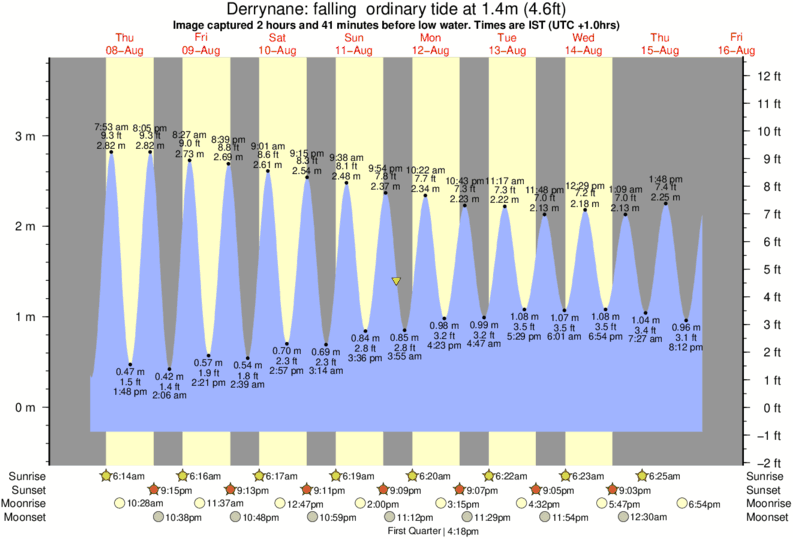 Image captured 2 hours and 41 minutes before low water (falling ordinary tide). Tide height was 1.4m (4.6 ft). Range 3.76m (12.3 ft). Toggle tide graph
