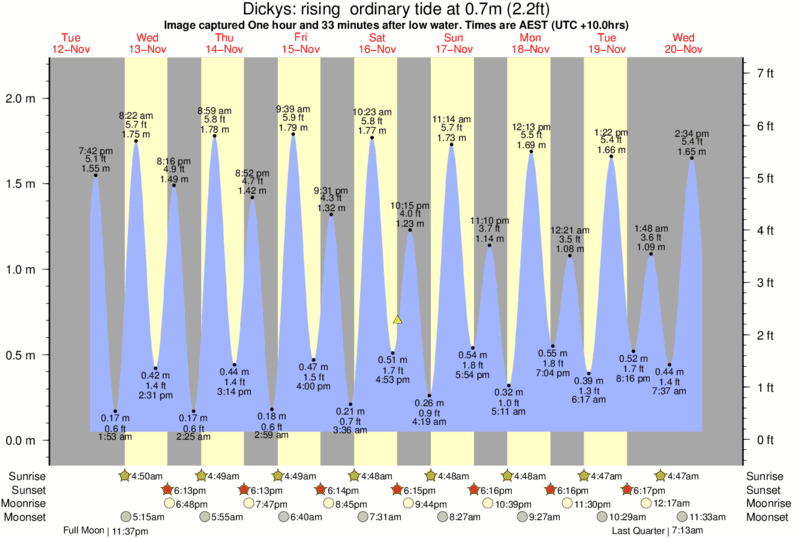 Image captured One hour and 33 minutes after low water (rising ordinary tide). Tide height was 0.7m (2.2 ft). Range 1.99m (6.5 ft). Toggle tide graph