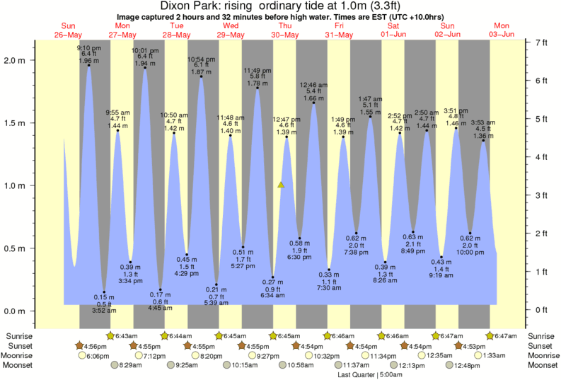 Image captured 2 hours and 32 minutes before high water (rising ordinary tide). Tide height was 1.0m (3.3 ft). Range 1.92m (6.3 ft). Toggle tide graph