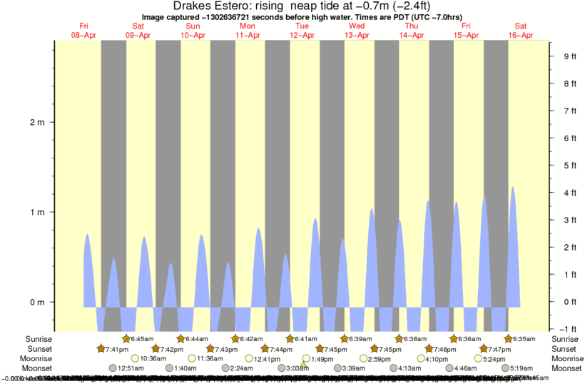 Forecast wind and swell just offshore from Drakes Estero around the time the photo was taken