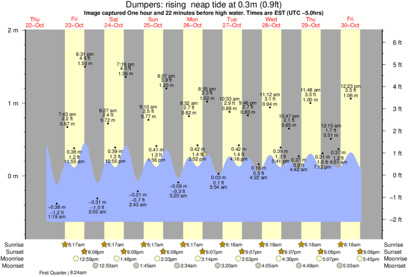 Image captured One hour and 22 minutes before high water (rising neap tide). Tide height was 0.3m (0.9 ft). Range 2.40m (7.9 ft). Toggle tide graph