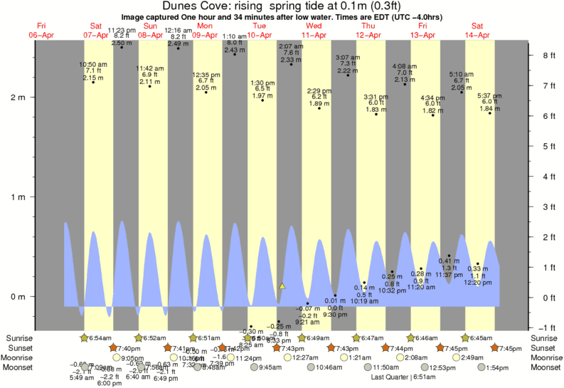 Image captured One hour and 34 minutes after low water (rising spring tide). Tide height was 0.1m (0.3 ft). Range 2.43m (8.0 ft). Toggle tide graph
