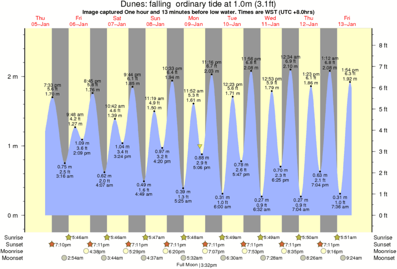 Image captured One hour and 13 minutes before low water (falling ordinary tide). Tide height was 1.0m (3.1 ft). Range 2.45m (8.0 ft). Toggle tide graph