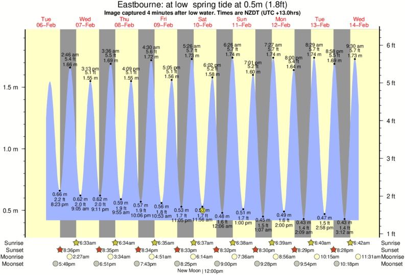 Image captured 4 minutes after low water (at low spring tide). Tide height was 0.5m (1.8 ft). Range 1.41m (4.6 ft). Toggle tide graph
