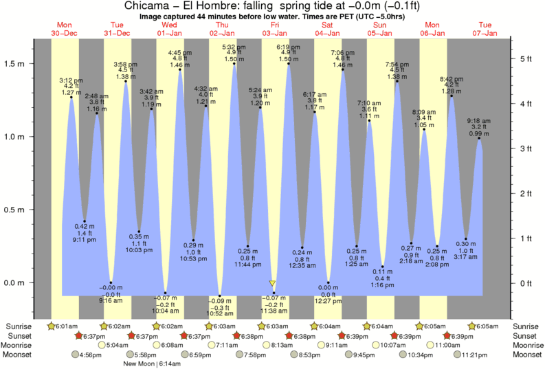 Image captured 44 minutes before low water (falling spring tide). Tide height was -0.0m (-0.1 ft). Range 1.60m (5.2 ft). Toggle tide graph
