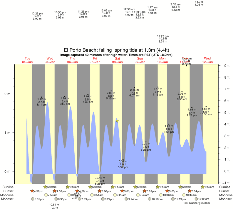 Image captured 40 minutes after high water (falling spring tide). Tide height was 1.3m (4.4 ft). Range 2.58m (8.5 ft). Toggle tide graph