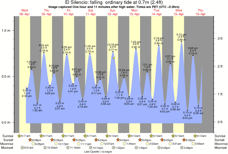 Forecast wind and swell just offshore from El Silencio around the time the photo was taken