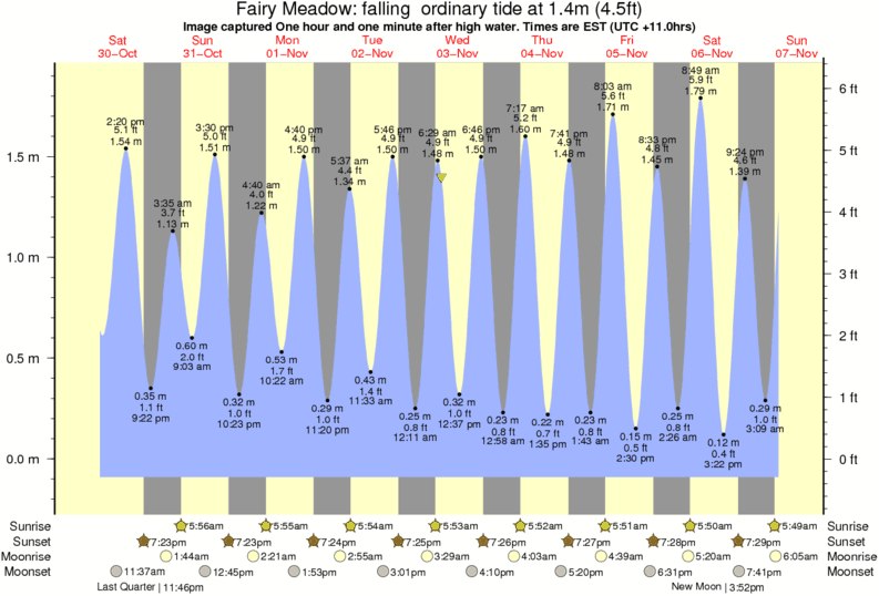 Forecast wind and swell just offshore from Fairy Meadow around the time the photo was taken