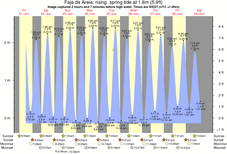 Forecast wind and swell just offshore from Faja da Areia around the time the photo was taken