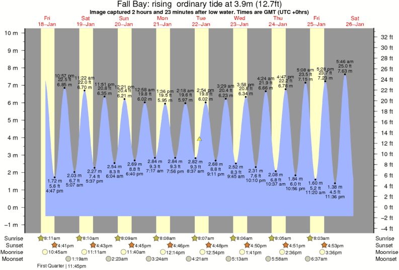 Image captured 2 hours and 23 minutes after low water (rising ordinary tide). Tide height was 3.9m (12.7 ft). Range 9.79m (32.1 ft). Toggle tide graph