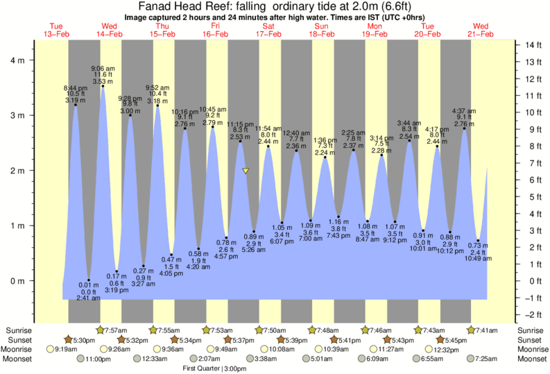 Image captured 2 hours and 24 minutes after high water (falling ordinary tide). Tide height was 2.0m (6.6 ft). Range 4.28m (14.0 ft). Toggle tide graph