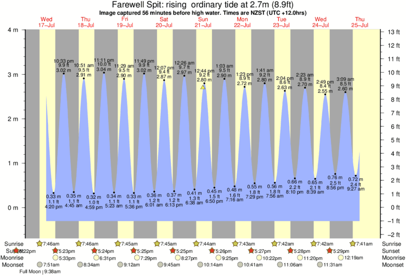 Forecast wind and swell just offshore from Farewell Spit around the time the photo was taken
