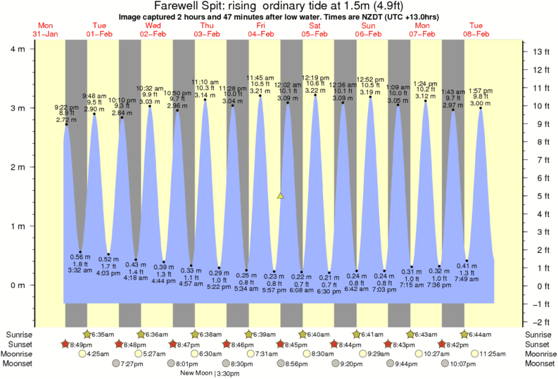 Forecast wind and swell just offshore from Farewell Spit around the time the photo was taken