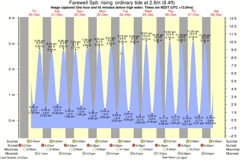 Forecast wind and swell just offshore from Farewell Spit around the time the photo was taken