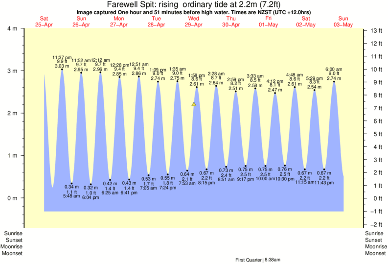 Forecast wind and swell just offshore from Farewell Spit around the time the photo was taken