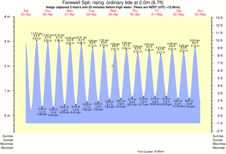 Forecast wind and swell just offshore from Farewell Spit around the time the photo was taken