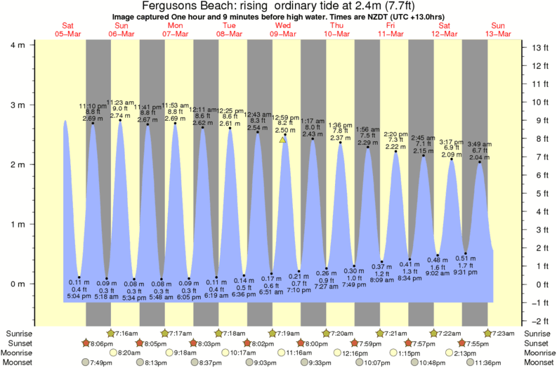 Forecast wind and swell just offshore from Fergusons Beach around the time the photo was taken